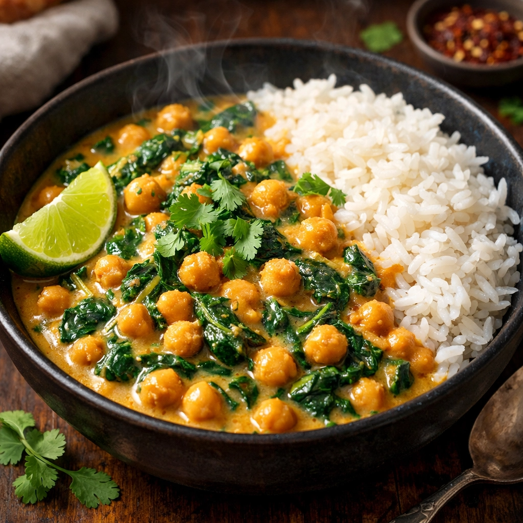 - Curry Vegano de Grão de Bico e Espinafre com Leite de Côco: Uma Refeição Confortante e Nutritiva