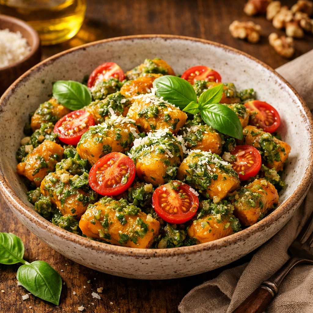 O nhoque, com sua textura macia e reconfortante, é um prato que evoca memórias de refeições caseiras e aconchegantes. Nesta receita, reinventamos o clássico italiano utilizando batata doce, um tubérculo nutritivo e naturalmente adocicado, que confere ao nhoque uma cor vibrante e um sabor único. Combinado com um pesto fresco de manjericão e nozes, este prato se torna uma opção saudável, vegetariana e cheia de personalidade, alinhando-se perfeitamente com as tendências gastronômicas de 2026 que valorizam a comida funcional, ingredientes naturais e a busca por alternativas mais nutritivas . Ideal para um almoço especial ou um jantar romântico, o Nhoque… Leia mais: Nhoque de Batata Doce com Pesto de Manjericão e Nozes: Uma Versão Saudável e Cheia de Sabor - Salmão ao Molho de Mel e Gengibre com Arroz de Couve-Flor: Uma Opção Leve e Saborosa